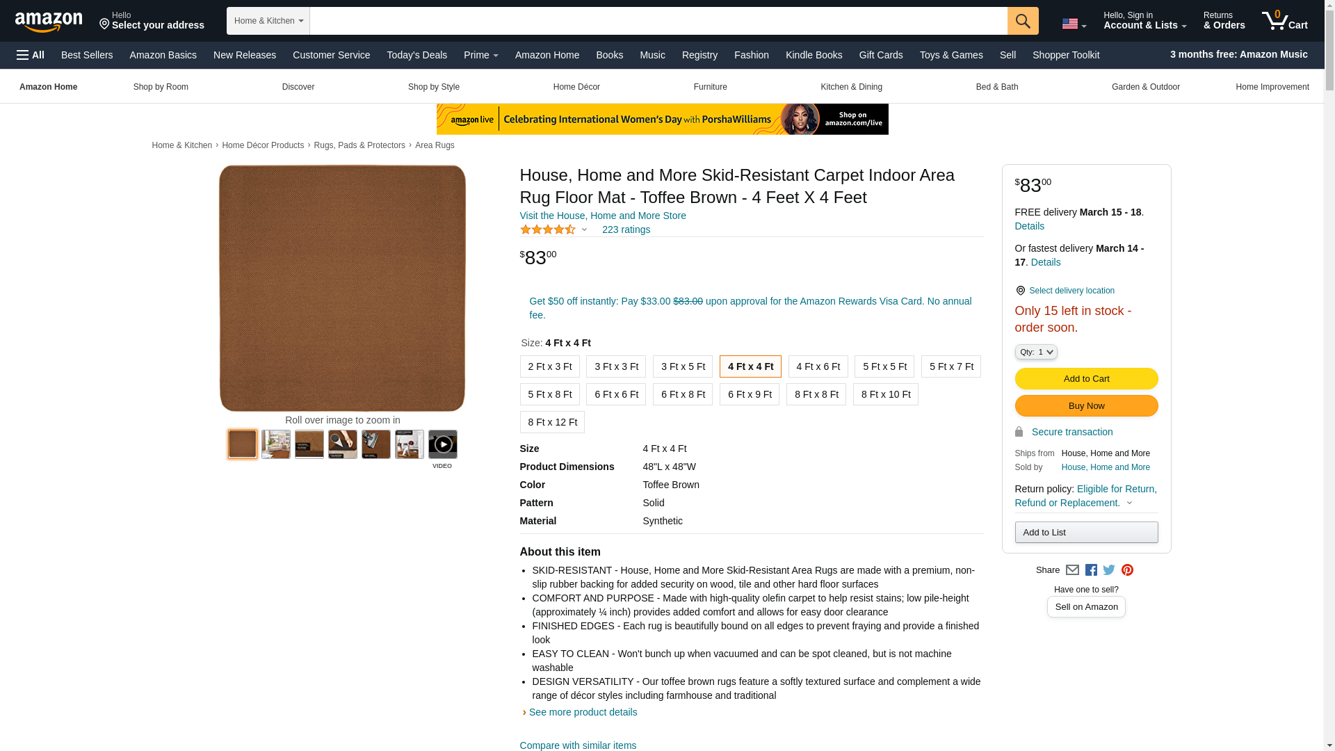 House, Home and More Skid-Resistant Carpet Indoor Area Rug Floor Mat - Toffee Brown - 4 Feet X 4 Feet: Maxedbuy.com