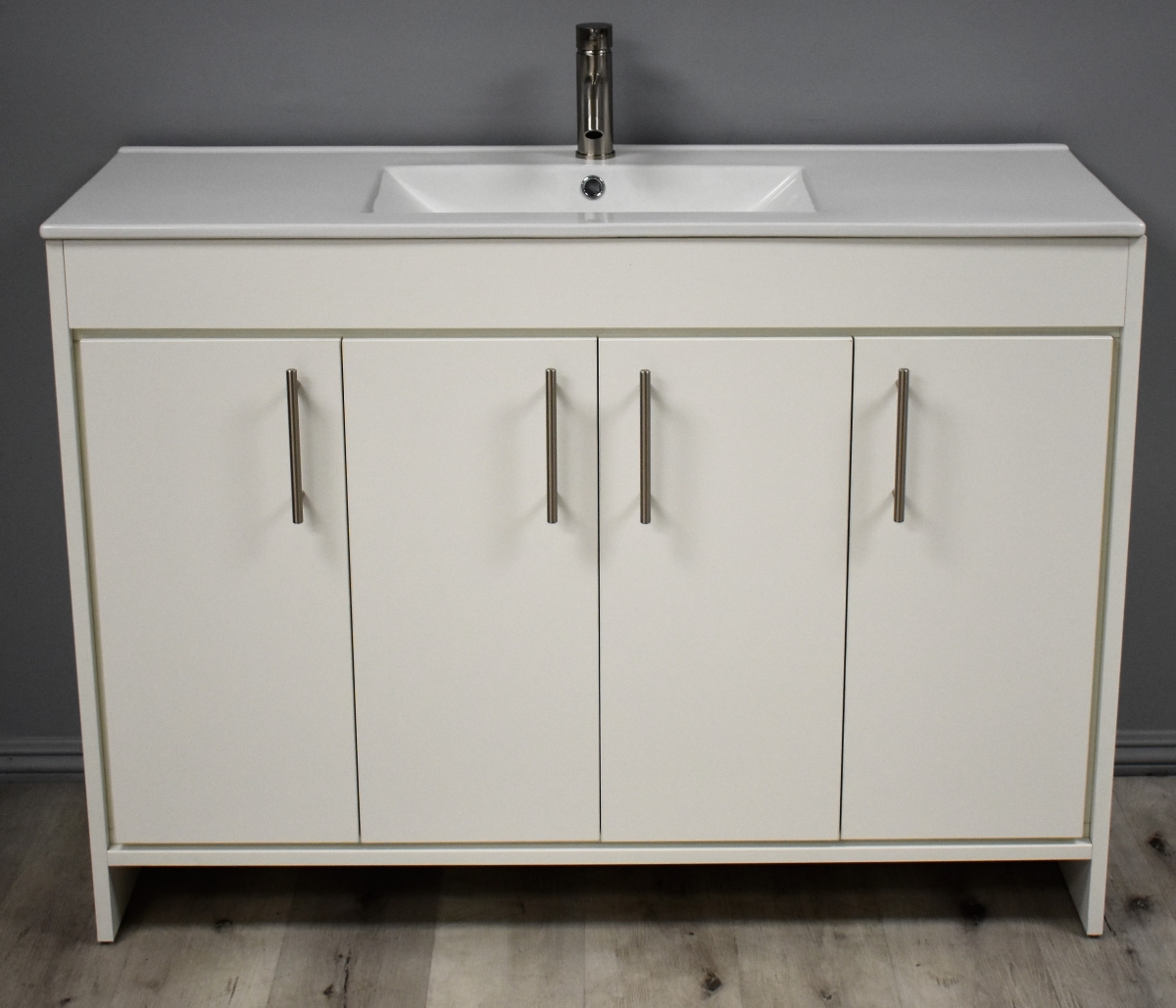 MTD Vanities MTD-3448W-14 Villa 48 in. Modern Bathroom Vanity with Integrated Ceramic Top & Brushed Nickel Round Handles in White