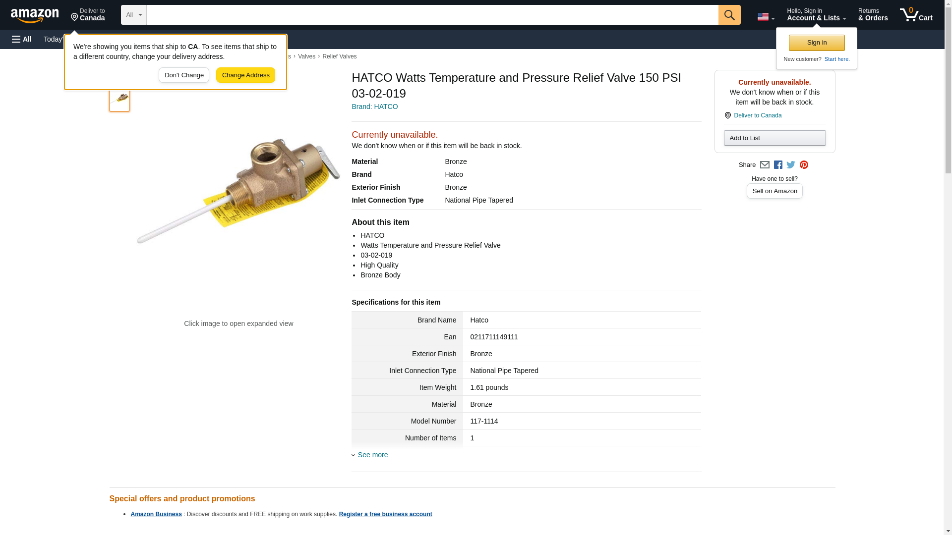 HATCO Watts Temperature and Pressure Relief Valve 150 PSI 03-02-019