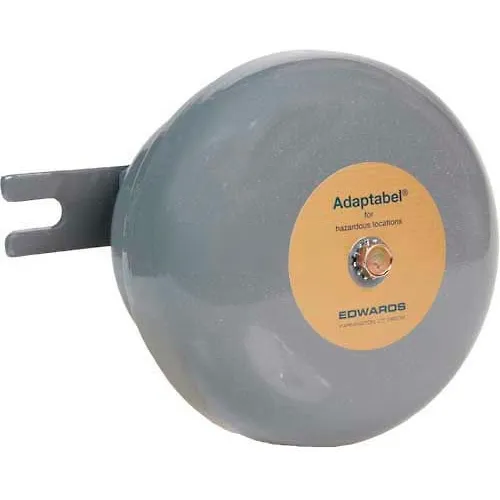 340EX-6G5 - Edwards Signaling BELL EX-PR 6"24V60HZ<br /> 340EX Series Information<br /> <ul><li>24~240 VAC</li><li>Bells</li><li>6", 8" and 10" Gong Sizes</li><li>Completely Assembled</li><li>UL Approved</li></ul>Hazardous location AC vibrating bells produce a distinctive, loud, and clear ringing sound that is free of mechanical clatter. The striker continues to strike the gong in rapidfire action as long as current is applied.<br /> Mounts to any solid surface using 3/8" (10mm) fasteners. Units fitted with a sealing fitting for 3/4" (19mm) conduit and wire leads for power connections.<br /> Specified for timing, scheduling, paging, and general alarm applications in refineries, gasoline storage and dispensing areas, petrochemical manufacturers, spray paint areas, aircraft hangers, grain dust areas in graineries and flour mills, and industrial firms using flammable liquids.