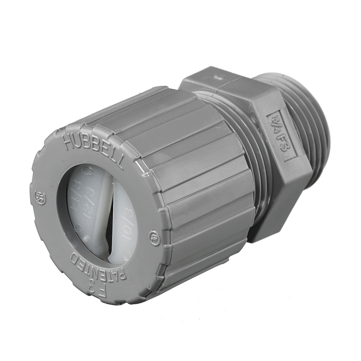 Hubbell Wiring Device-KELLEMS 2.05"L Nylon Liquid Tight Underground Cord Connector, Gray, 0.25" to 0.55" Cord Dia. Range