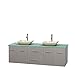Wyndham Collection Centra 72" Double Bathroom Vanity in Grey Oak, Green Glass Countertop, Avalon Ivory Marble Sinks & No Mirror