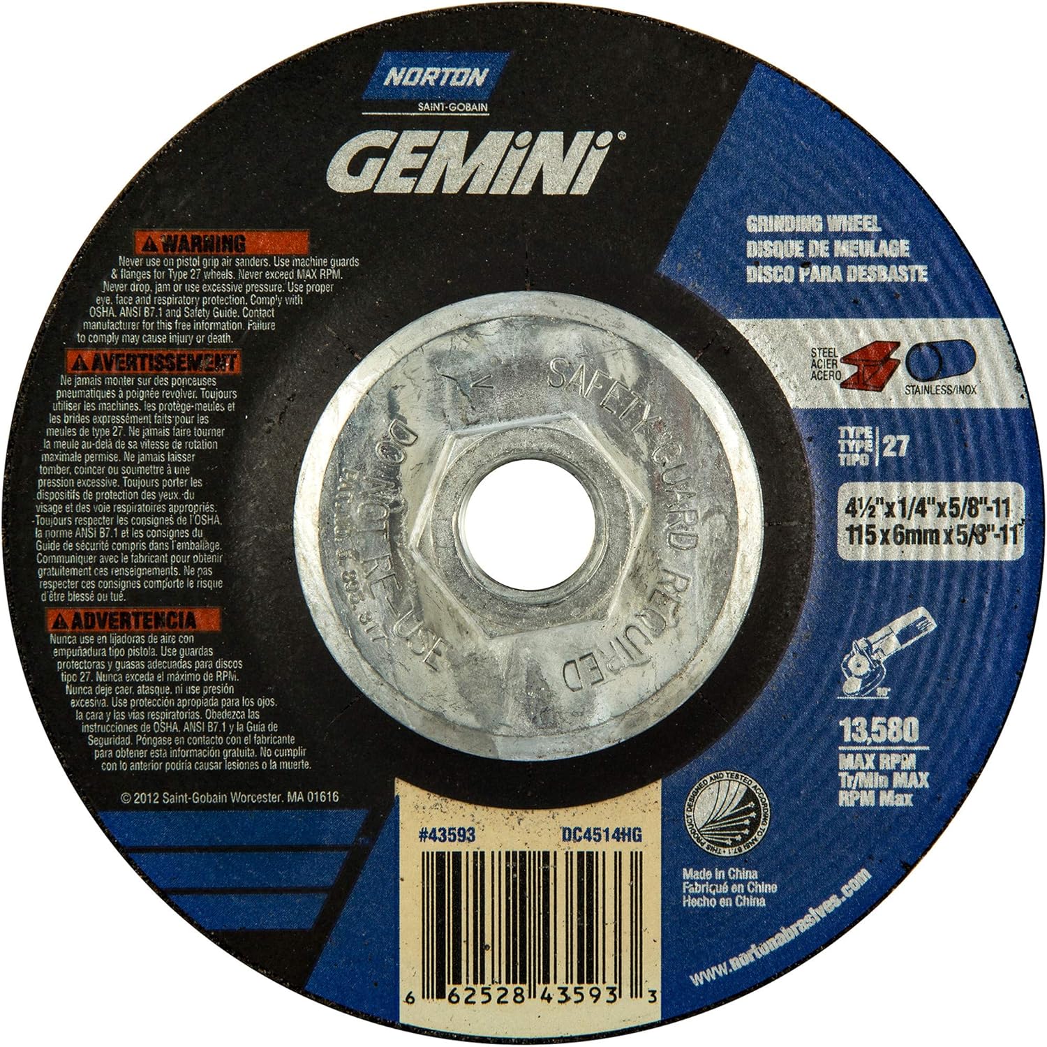 PART NO. NOR66252843593 Norton 66252843593, 4-1/2 x 1/4 x 5/8", Gemini Depressed Center Wheel Type 27