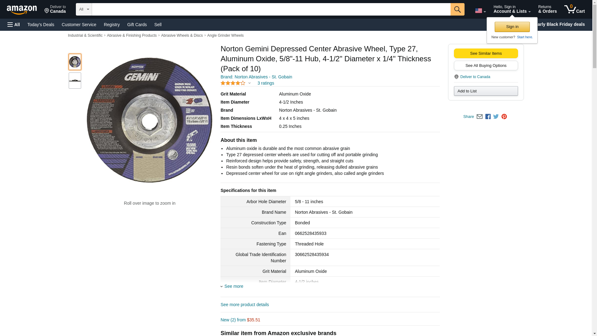 | Feature | Price For: Each Item: Depressed Center Wheel Abrasive Material: Aluminum Oxide Thickness: 1/4" Application: Ferrous Metal, Gray Iron, Stainless Type: Type 27 Grade: Extra Coarse Grit: 24 Max. RPM: 13, 580 Diameter: 4-1/2" Arbor Size: 5/8"-11 Wheel Type: Grinding Series: Gemini Country of Origin (subject to change): China |