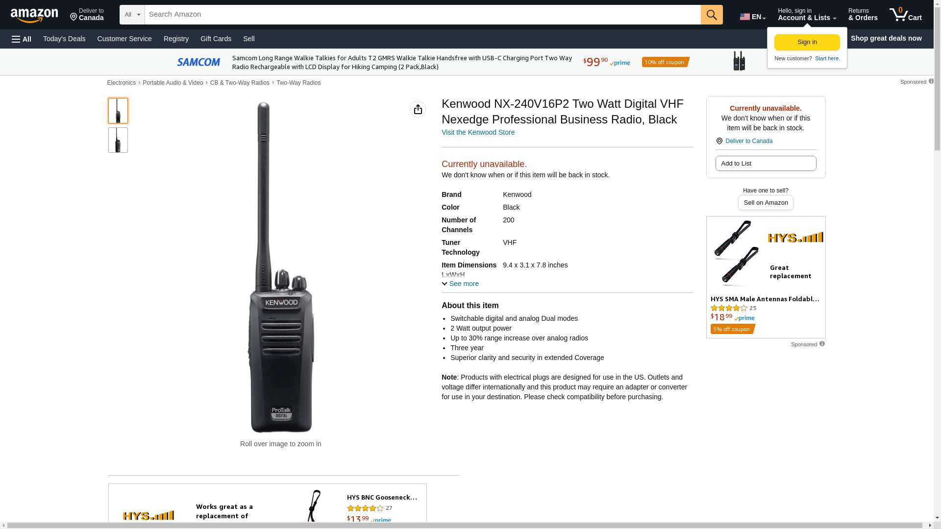 Kenwood NX-240V16P2 Two Watt Digital VHF Nexedge Professional Business Radio, Black