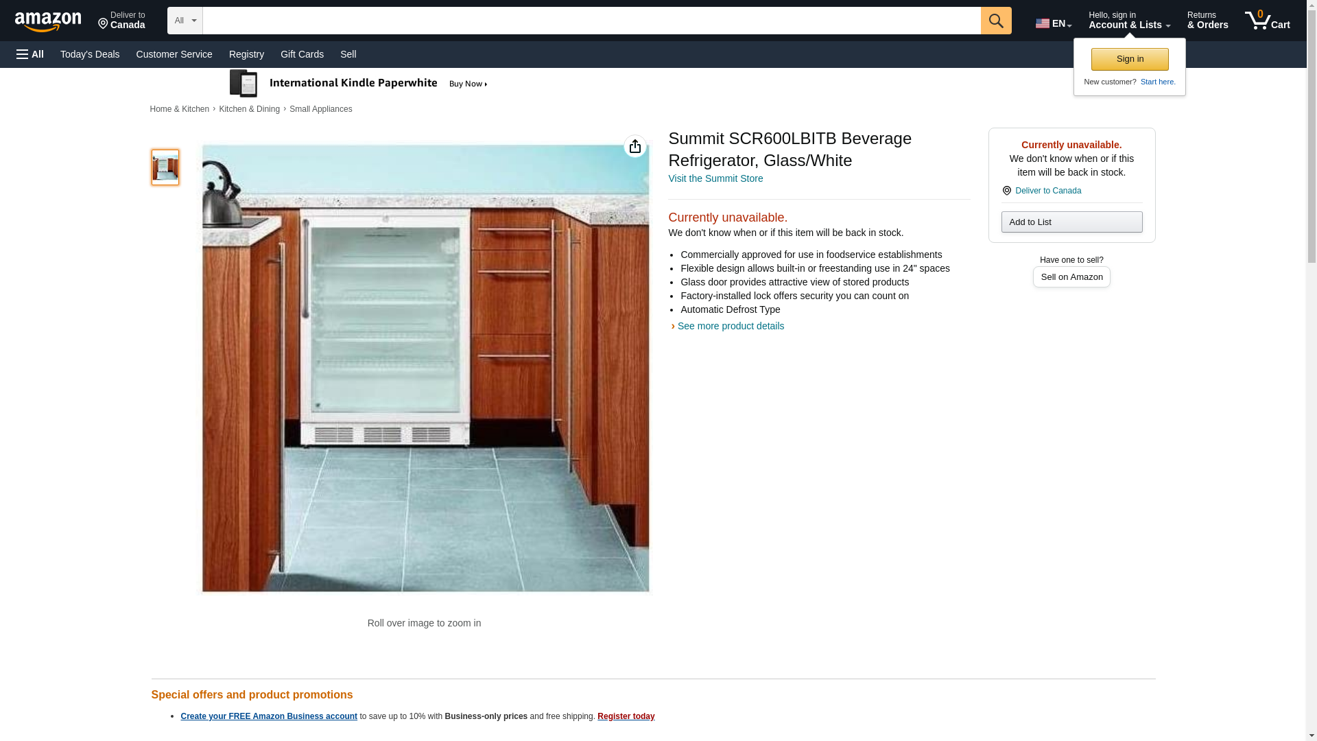 Summit SCR600LBITB Beverage Refrigerator, Glass/White