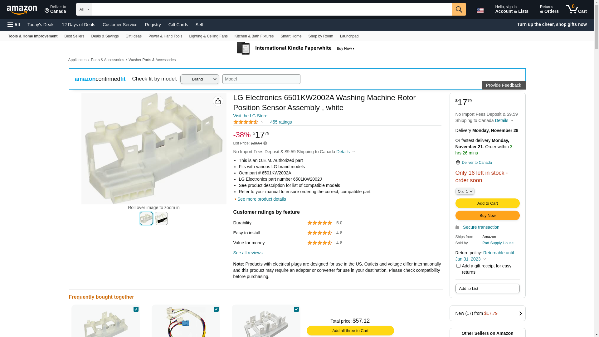 | Partstown | LGE6501KW2002A | 1 | 1 | 1 @ $34.61 | |