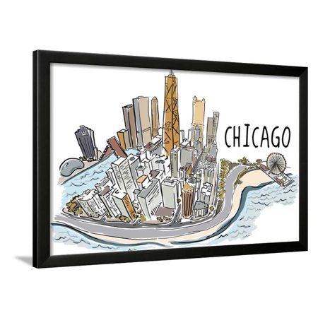 <ul> <li>Title: Chicago, Illinois - Cityscape - Line Drawing</li> <li>Artist: Lantern Press</li> <li>Paper Type: Art Print</li> <li>Product Type: Framed Art Print</li> <li>Framed in SOHO Black</li> <li>Arrives ready-to-hang for fast, simple installation</li> <li>Framed Size: 32x22 in.</li> <li>Handcrafted in the USA</li> </ul>