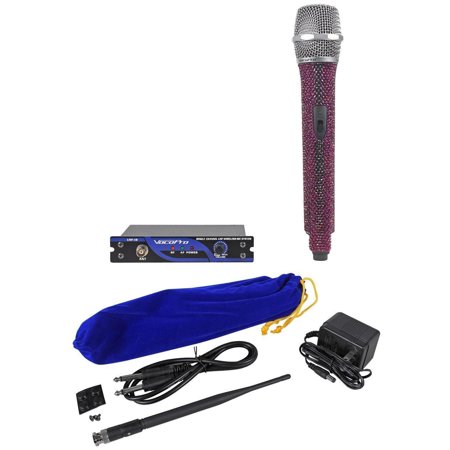 <p>SPARKLING DIAMOND LIKE CRYSTAL MICROPHONES<br />Great For Karaoke, Bars, Singers, Live Audio Performances and More! Bring LifeTo The Party With These Cool Sparkling Microphones from VocoPro a leader inprofessional audio equipment!<br />LIGHTS, CAMERA, ACTION!<br />Want to sing like the stars? Check out our new high-profile wireless microphonesystem studded with diamond-like crystals. Built on our proven UHF wirelesstechnology, you count on sounding just as good as you look. The compact andrugged all-metal receiver is designed for use as both a stand-alone module, oron many of our all-in-one systems. There are several frequencies and colors tochoose from to match your style. Whether it is you or a guest, one thing is forsure ? you will shine like a star! </p> <p>Features:</p> <p></p> <ul> <li>Vocopro UHF-18-Diamond-Amethyst (Purple) UHF Wireless Microphone System with Crystals </li> <li>Includes ONE Amethyst (Purple) microphone and one receiver for other colors see our other items we have them all! </li> <li>Can Be Used as a Plug-In Device or Independently</li> <li>Available in multiple colors and frequencies</li> <li>UHF Antenna Connects Securely with BNC Plug</li> <li>Volume Control with Power Switch</li> <li>1/4" Mic Out and DC Input for Independent Operation</li> <li>Fits Expansion Ports on the HERO-REC, CHAMPION-REC</li> <li>Microphone Requires Two AA Batteries</li> <li>Power Adapter and 1/4" Patch Cable Included</li> <li>Actual Unit Dimensions: 6" (W) x 4.25" (D) x 1.25" (H)</li> <li>Actual Unit Weight: 2 lbs</li> <li>Rear Panel Connections:</li> <li>Power adapter plug</li> <li>1/4" Mic output</li> <li>Multi-function jack (for connecting to compatible units such as CHAMPION-REC or HERO-REC)</li> </ul> <p></p>