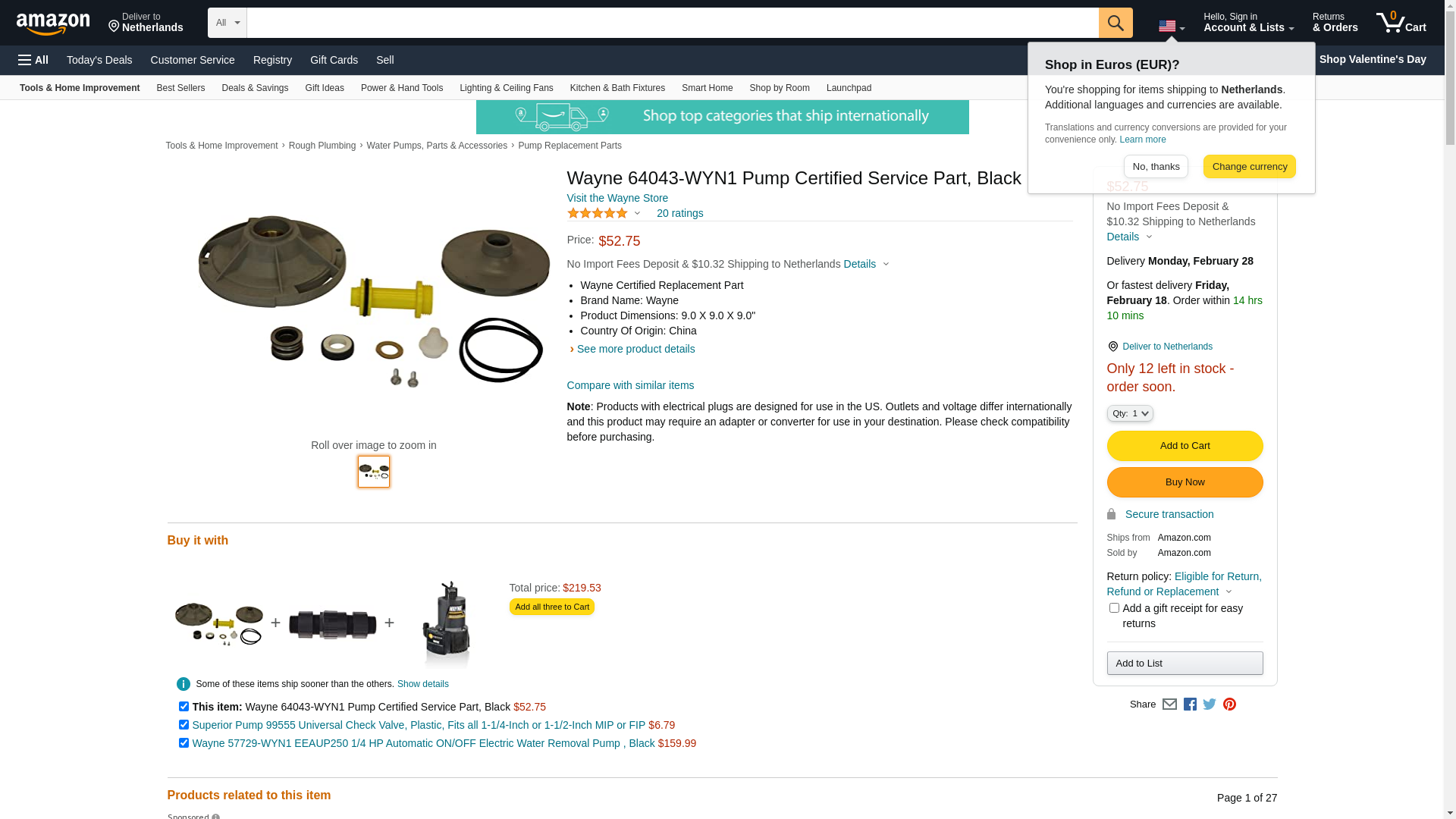 Wayne 64043-WYN1 Pump Certified Service Part, Black
