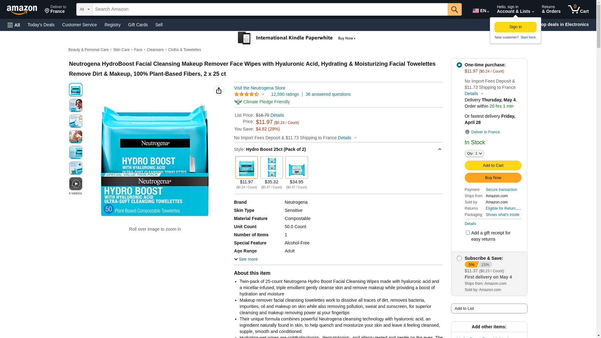 Neutrogena Twin-pack of 25-count Neutrogena Hydro Boost Facial Cleansing Wipes (50 count in total): Maxedbuy.com