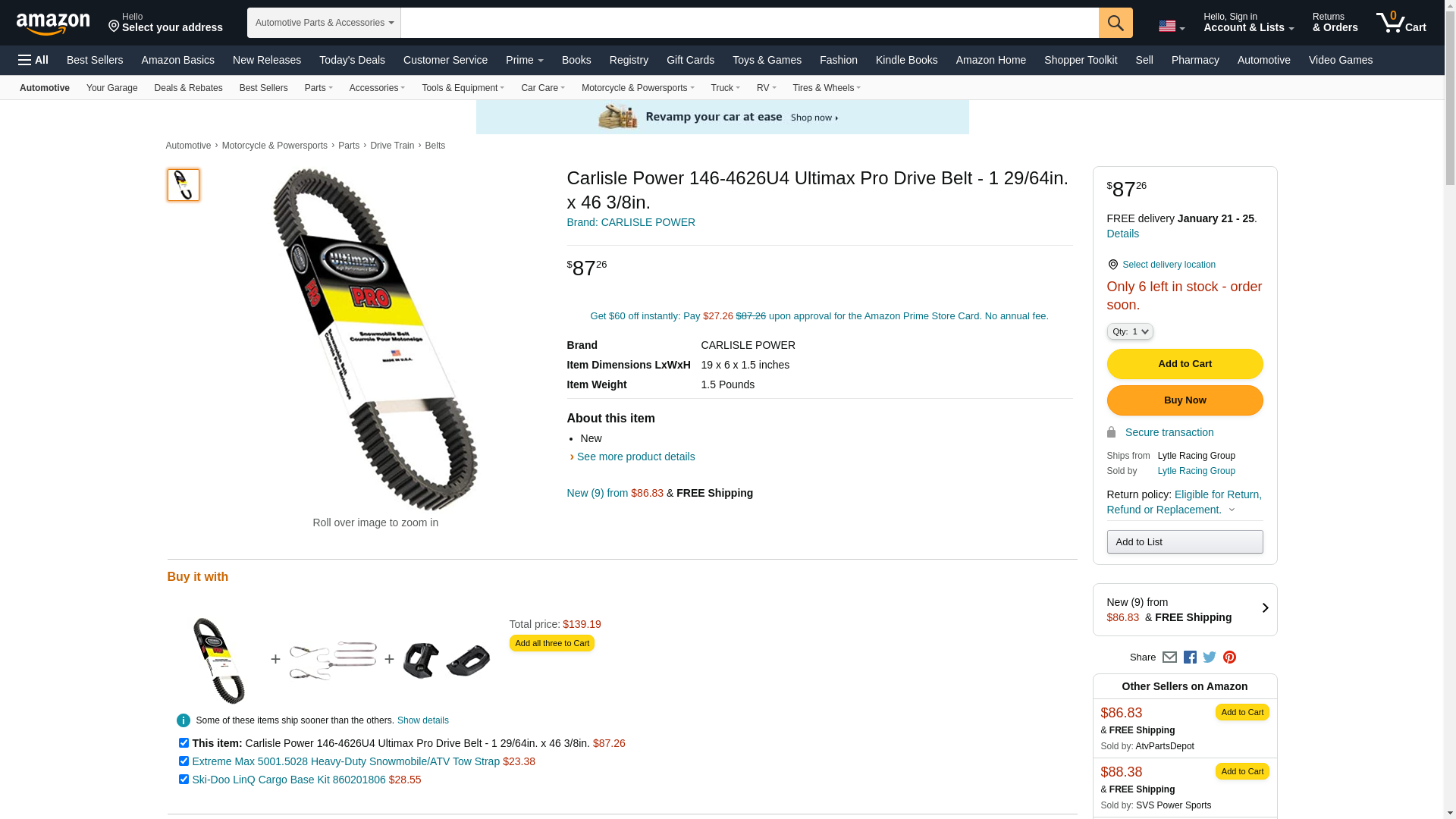 Carlisle Ultimax 3 has evolved into Ultimax PRO. Thicker cross section so more surface area is in contact with clutch. New cog design dissipates heat and aids flexibility Runs cooler for better performance. Run cool, run long & run fast with Ultimax PRO</BR>Additonal Fitment:</BR>2007-2010 ARCTIC CAT M8 </BR>2007-2010 ARCTIC CAT M6 </BR>2009-2009 ARCTIC CAT CROSSFIRE R 800</BR>2009-2009 ARCTIC CAT CROSSFIRE 800 SNO PRO</BR>2008-2008 ARCTIC CAT T570</BR>2007-2008 ARCTIC CAT F6</BR>2007-2008 ARCTIC CAT F5 </BR>2011-2011 ARCTIC CAT M6 153 </BR>2008-2009 ARCTIC CAT CROSSFIRE 1000 SNO PRO</BR>2009-2011 ARCTIC CAT BEARCAT 570 XT</BR>2007-2010 ARCTIC CAT M8 SNO PRO</BR>2008-2009 ARCTIC CAT CROSSFIRE 1000</BR>2007-2009 ARCTIC CAT F1000 LXR</BR>2008-2010 ARCTIC CAT CROSSFIRE 8</BR>2007-2008 ARCTIC CAT F5 LXR</BR>2007-2009 ARCTIC CAT F1000</BR>2007-2010 ARCTIC CAT F8 LXR</BR>2009-2009 ARCTIC CAT CROSSFIRE 600</BR>2007-2011 ARCTIC CAT CROSSFIRE 6</BR>2007-2010 ARCTIC CAT M1000 SNO PRO</BR>2009-2009 ARCTIC CAT CROSSFIRE 8OO</BR>2007-2008 ARCTIC CAT CROSSFIRE 5</BR>2007-2009 ARCTIC CAT F1000 SNO PRO</BR>2008-2010 ARCTIC CAT CROSSFIRE 8 SNO PRO</BR>2007-2009 ARCTIC CAT M1000 </BR>2009-2009 ARCTIC CAT CROSSFIRE 500</BR>2009-2009 ARCTIC CAT CROSSFIRE R 1000</BR>2008-2008 ARCTIC CAT T500</BR>2010-2010 ARCTIC CAT M8 HCR</BR>2010-2010 ARCTIC CAT CFR1000</BR>2007-2010 ARCTIC CAT F8</BR>2007-2011 ARCTIC CAT F6 SNO PRO</BR>2008-2008 ARCTIC CAT F570 </BR>2007-2010 ARCTIC CAT F8 SNO PRO</BR>2010-2010 ARCTIC CAT CFR8</BR>2007-2008 ARCTIC CAT F6 LXR