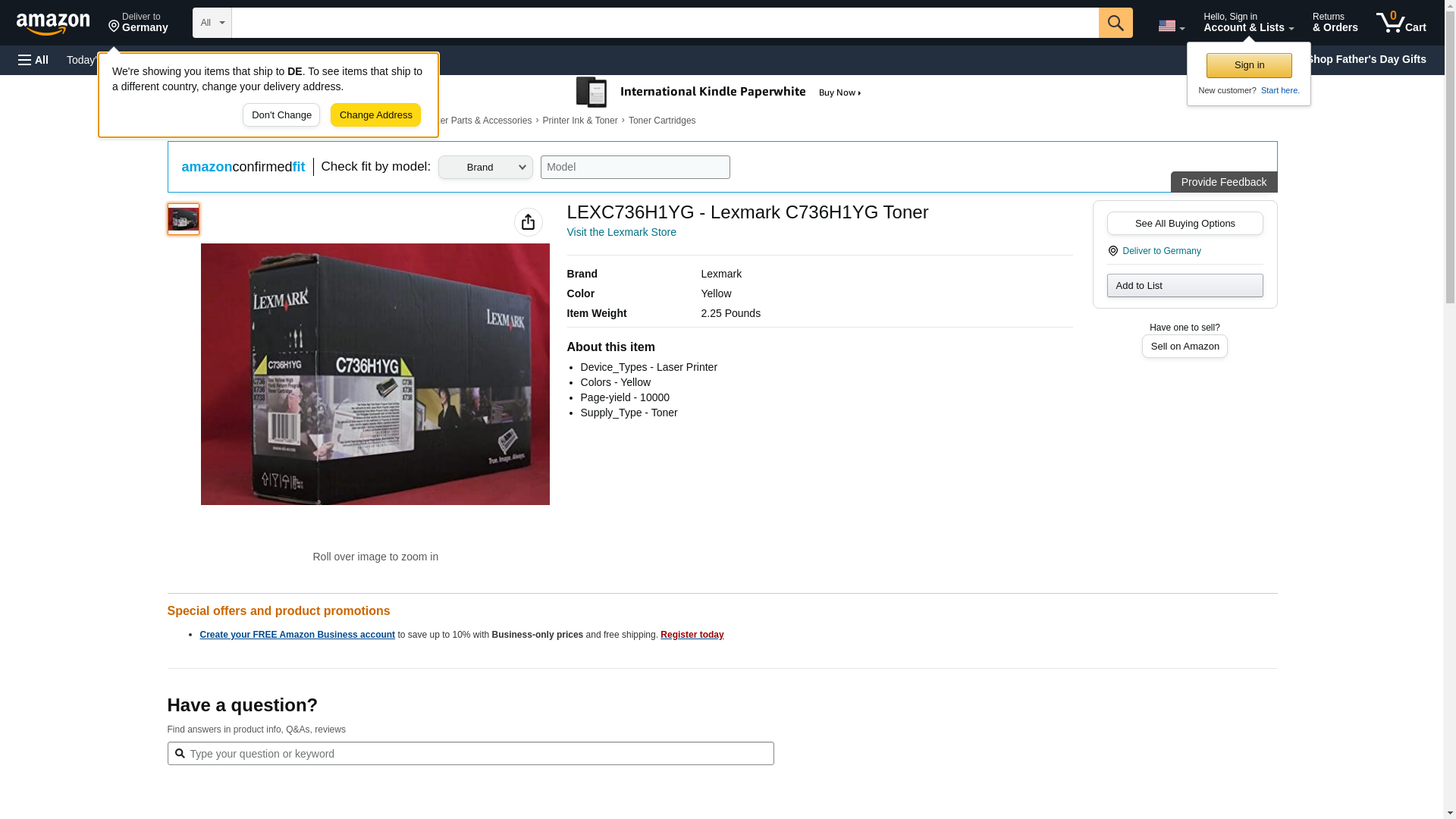 Lexmark C736h1yg High-Yield Toner Cartridge, Yellow - in Retail Packaging