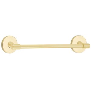 Transitional Brass Collection - 24" Centers Transitional Brass Towel Bar with Disk Rosette in Satin Brass by Emtek Hardware - 2902709US4 | MyKnobs