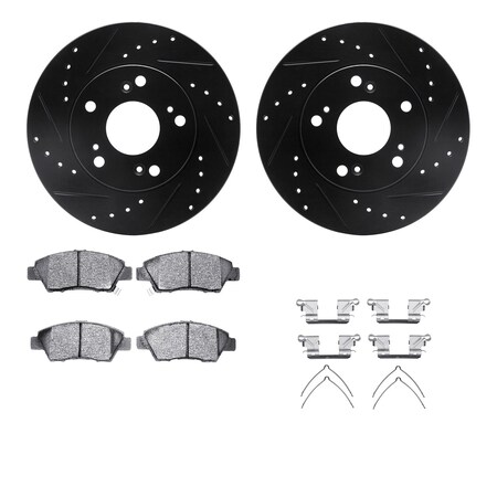 8512-59038, Rotors-Drilled and Slotted-Black w/ 5000 Advanced Brake Pads incl. Hardware, Zinc Coated