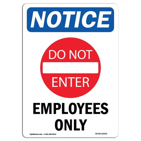 OSHA Notice Sign, Employees Only With Symbol, 5in X 3.5in Decal