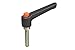 Nylon Adjustable Handle with Orange Push Button, S/S Threaded Stud, 1-49/64" Length, 1-3/8" Height, 10-32 TPI Thread, 49/64" Thread Length (Pack of 1)