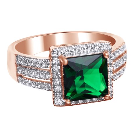 <ul> <li>Metal : Rose Gold Plated Silver With 925-Sterling Stamp</li> <li>Stone : Simulated Green Emerald (Lab-Created) & Cubic Zirconia (Lab-Created)</li> <li>Stone Shape : Princess Cut & Round</li> <li>Stone Setting Type : Prongs</li> <li>Stone Creation Method : Simulated</li> </ul>