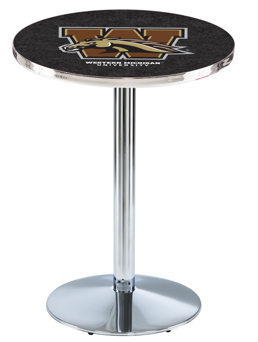Holland Bar Stool L214C3636WestMI 36 in. Western Michigan Broncos Pub Table with 36 in. Top, Chrome