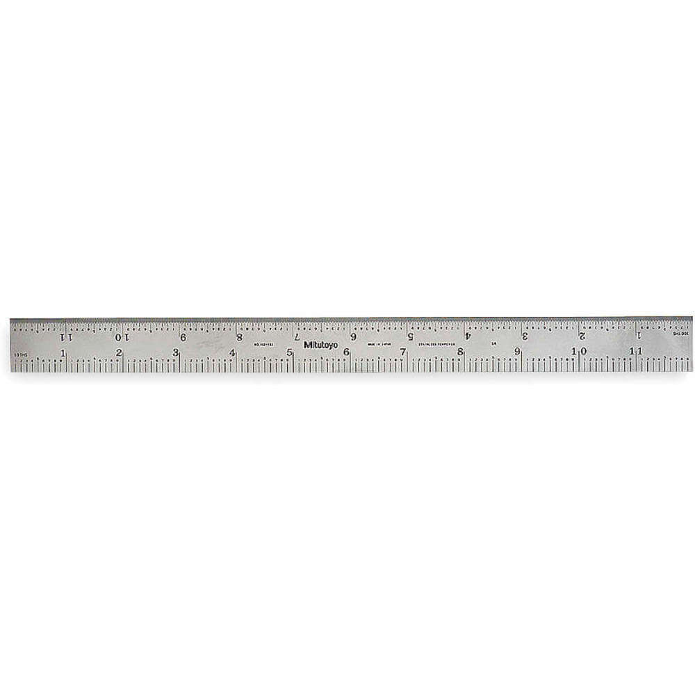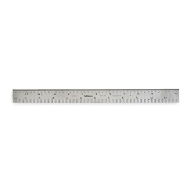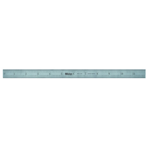 This Mitutoyo 12 in. Stainless Steel Ruler is a reliable measuring tool that you can count on to deliver accurate results. Made of tempered stainless steel, the rigid rule offers durability and strength. The rule has graduations at 1/32, 1/64, 1/10 and 1/100th increments. It also has a satin chrome finish and measures 12" long by 1" wide. This flexible ruler is suitable for both right and left handed users as it comes with graduation type 5R. The Mitutoyo 12 in. Stainless Steel Ruler will provide you with an accurate measurement every time you use it.