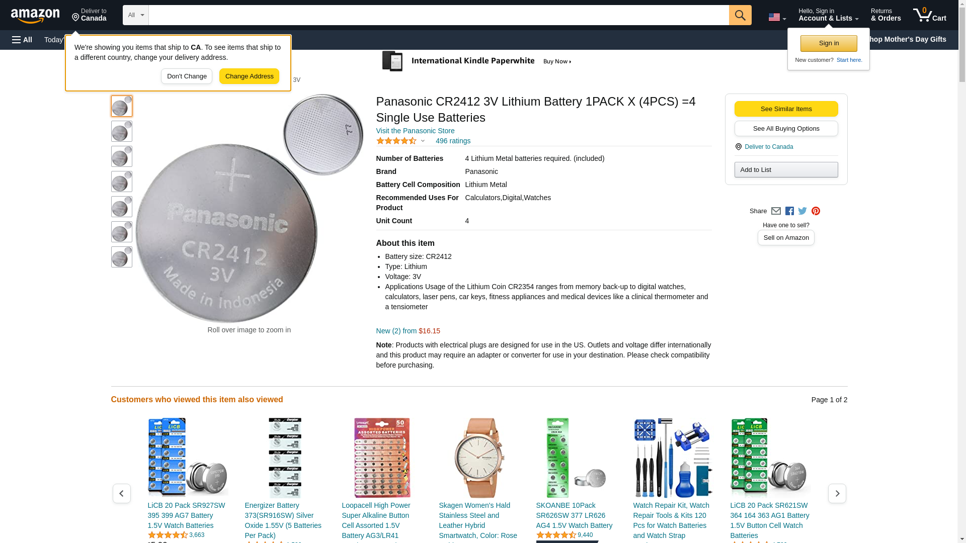 - Battery size: CR2412