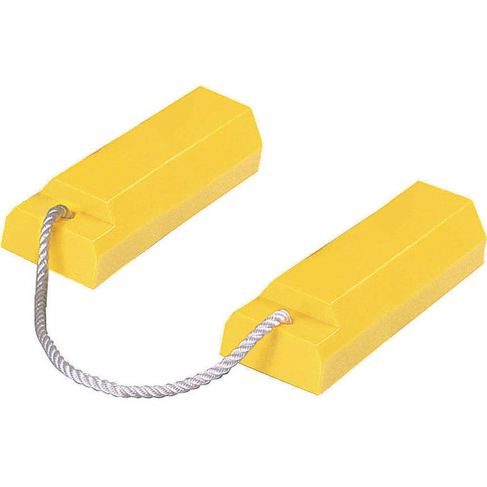 IndustrialSafety.com | Checkers AC3515-RP-P Pair Aviation Chock 15" Yellow Chock Body 24" X 1/2" Nylon Rope Rubber Pad
