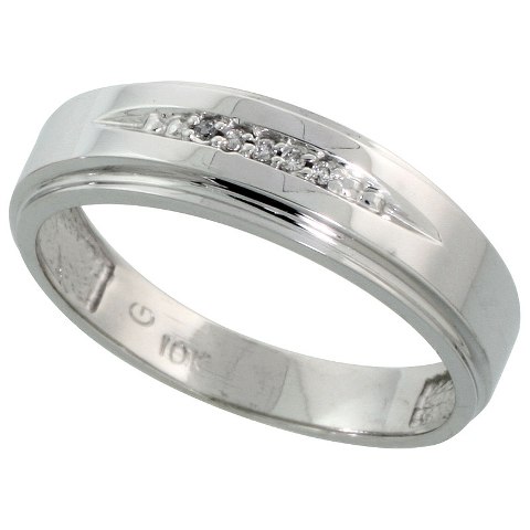 World Jewels 10K White Gold Men Diamond Wedding Band, Size 12.5