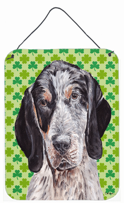 Carolines Treasures SC9721DS1216 Blue Tick Coonhound Lucky Shamrock St. Patricks Day Aluminum Metal Wall Or Door Hanging
