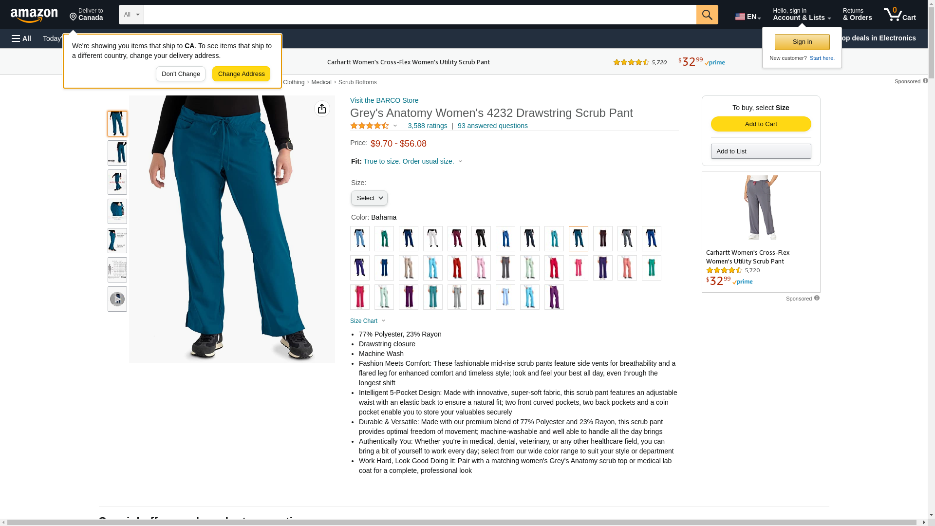 Grey's Anatomy Women's Junior-Fit Five-Pocket Drawstring Scrub Pant - Large Tall - Bahama