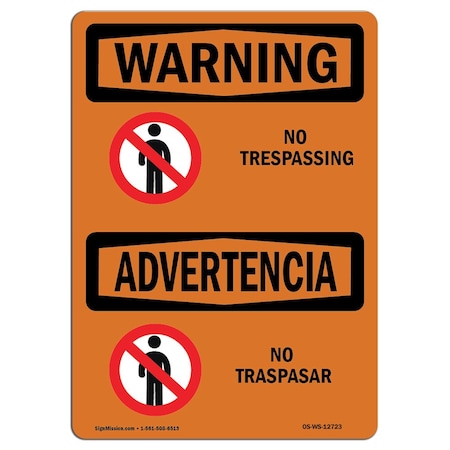 OSHA WARNING Sign, No Trespassing, 18in X 12in Aluminum