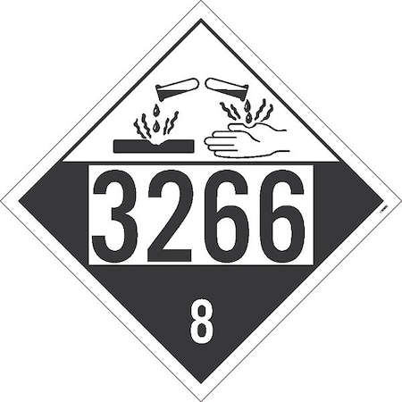 Placard, Corrosive 3266 8, 10.75X10.75, Removable Ps Vinyl, Pack 25