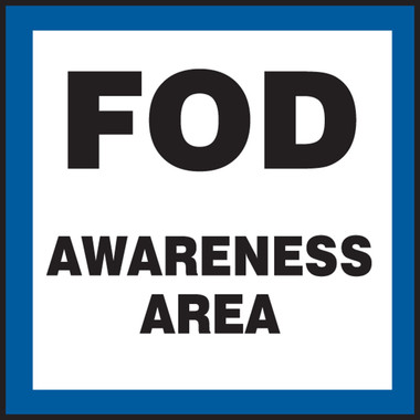 Accuform MQTL524XT Dura-Plastic Sign, Legend "FOD Awareness Area", 12" Length x 12" Width x 0.060" Thickness, Blue/Black On White, 12" Height, 12" Wide, 12" Length, Dura-Plastic, 12" x 12"