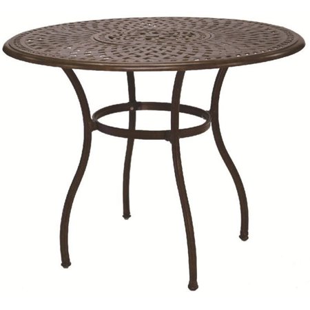 Darlee's Series 60 Tables show a lovely swirled crisscross pattern. They will surely sparkle in the sunlight, and make any festivity a grand event. Whether you want a block party or a home bbq, Darlee offers a wide variety of sizes to suit every occasion. The Series 60 tables are available in two rust resistant finishes, Mocha and Antique Bronze. Nearly all the tables provide a hole for umbrella use, or you can apply the included cap for a solid look. All tables are hand made with 100% cast-aluminum for heavy weight durability.Material: Cast-AluminumWeather-resilient heavyweight cast aluminum constructionPowder-coated with elegant multi-step hand finishRemovable tabletop lid exposes recessed, lift-out stainless-steel ice bucketSome assembly requiredSpecifications:Overall Product Dimension: 34.5" H x 52" W x 52" DProduct Weight: 35 lbs