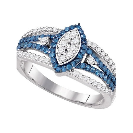 <ul> <li>10kt White Gold</li> <li>7/8 Carats total weight</li> <li>Widest point width: 11.5 mm (.45 inches )<br />; Width of shank: 2 mm</li> <li>3.25 grams (approximately)</li> <li>Ring size selectable. All diamonds are natural and conflict-free in origin.</li> </ul>