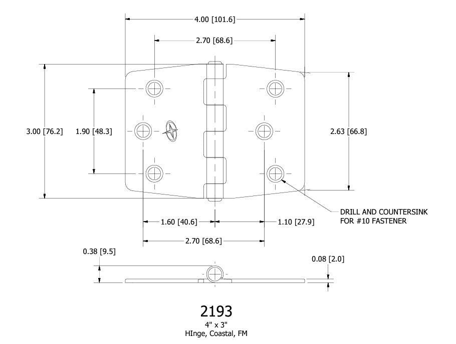 GEMLUX Coastal Flush Mount Boat Hinge 4" x 3-1/8" Stainless Steel 2193 | Essenbay Marine