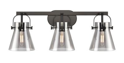 Innovations Lighting 423-3W-BK-G411-6SM Pilaster II Cone - 3 Light Bath Vanity in Industrial Style-10.13 Inches Tall and 26.5 Inches Wide, Finish Color: Matte Black, Glass Color: Plated Smoke