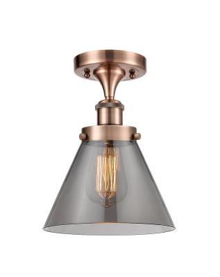 INNOVATIONS LIGHTING 916-1C-AC-G43-LED BALLSTON LARGE CONE 1 LIGHT 8 INCH PLATED SMOKE GLASS SEMI-FLUSH MOUNT CEILING...