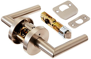 - Satin nickel Halifax door lever can be used on interior doors where a privacy locking function is required, such as a bedroom or bathroom door handles