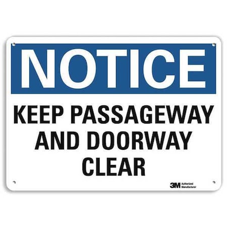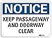 Smartsign U5-1292-RA_14X10"NOTICE KEEP PASSAGEWAY AND DOORWAY CLEAR" Reflective Recycled Aluminum Sign, 14" x 10"