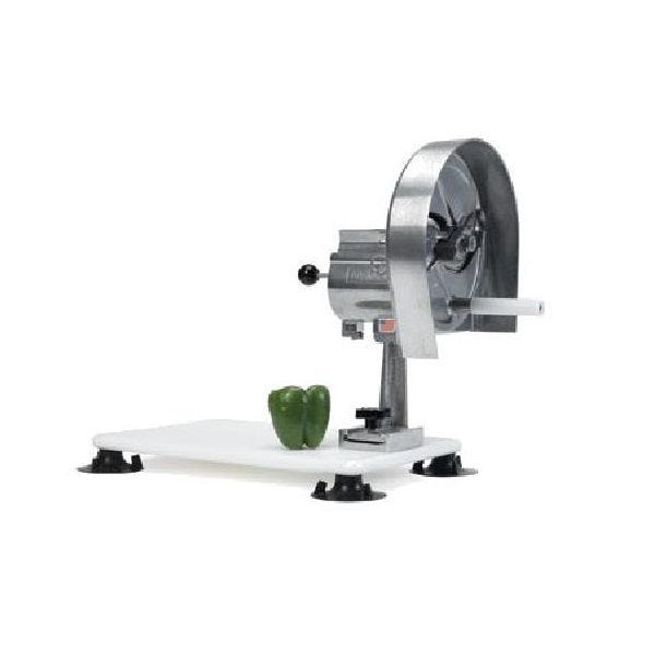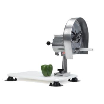 Easy Slicer Vegetable Slicer, slices many fruits and vegetables, adjustable stainless steel blade, slicing options from 1/16" to 1/2" in thickness, includes portable base (model 55816), NSF The only tool you'll need to slice fresh produce with incredible speed and precision. Turns Every Kitchen Novice Into a Slicing Master Name your vegetable or fruit and put anyone, even your most inexperienced kitchen personnel, on the job, and you’ll get slicing perfection. Nemco makes it easy—fast, precise and consistent, every time. Fast as Lightning, Without the Electricity How many seasoned pros do you have in your kitchen who are sharp with a knife? With Nemco, it doesn’t matter, because the Easy Slicer makes it possible for anyone to perfectly slice a vegetable in seconds or a 10-lb. bag of potatoes in just minutes. The best part is, with no electric power needed, the Easy Slicer's simple engineering and manual operation deliver reliable performance virtually anywhere in the kitchen. Precise, But Versatile The Easy Slicer features an exclusive visual thickness gauge, calibrated in 1⁄16” increments up to 1⁄2”, allowing the operator to preset the desired thickness with simple thumb-screw control. (Also available in fixed-slice thickness models.) Every slice in the rapid-fire cutting action that ensues is the perfect thickness, consistently all the way through the food item, for exceptional portion control and presentation, with virtually no waste. Easy to Use, Easy to Clean Just place your produce in the trough behind the blade and start turning the easy-action handle. It’s nearly effortless. Plus, disassembly is easy for cleaning, while the cast aluminum components wash up in a snap and last for years.