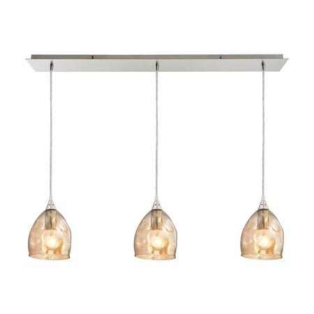 31595/3LP ELK Lighting Niche 3-Light Linear Mini Pendant Fixture In Satin Nickel With Champagne-Plated Glass