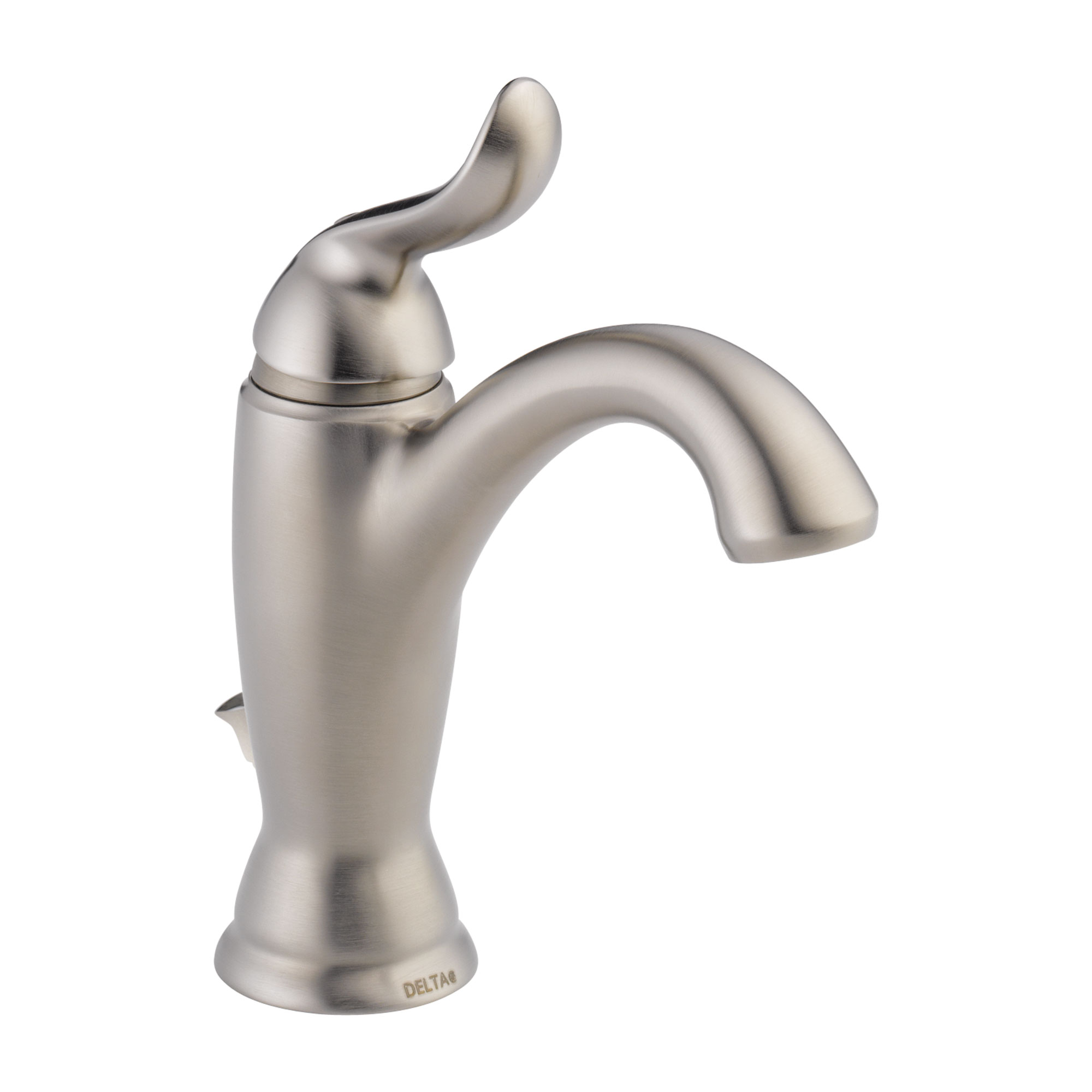 Delta Faucet Linden Single Hole Bathroom Faucet Brushed Nickel, Single Handle Bathroom Faucet, Diamond Seal Technology, Metal Drain Assembly, Stainless 594-SSMPU-DST
