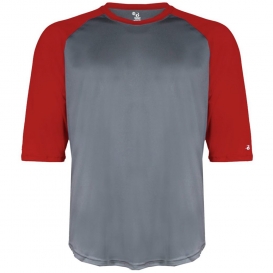 Badger B84385712 Youth B-Core 3 by 4 Sleeve Baseball T-Shirt, Graphite & Red - Extra Small