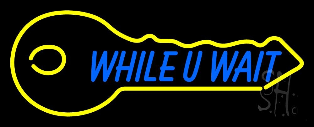 The Sign Store N105-2962 13 x 32 in. While You Wait Key Logo 1 Neon Sign - Yellow & Blue