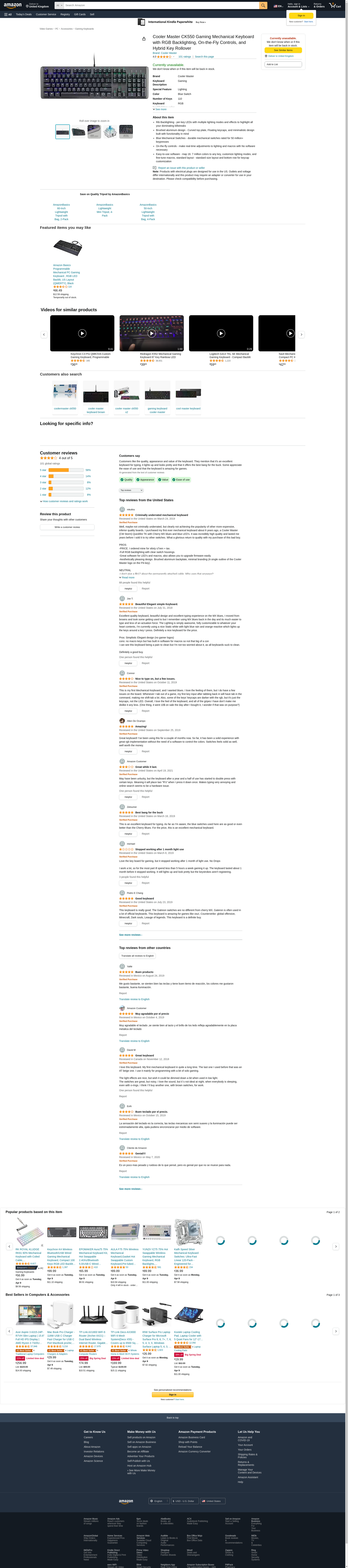 Cooler Master CK550 - keyboard - US - gunmetal black, Keyboards, Computer Accessories, CK-550-GKGL1-US
