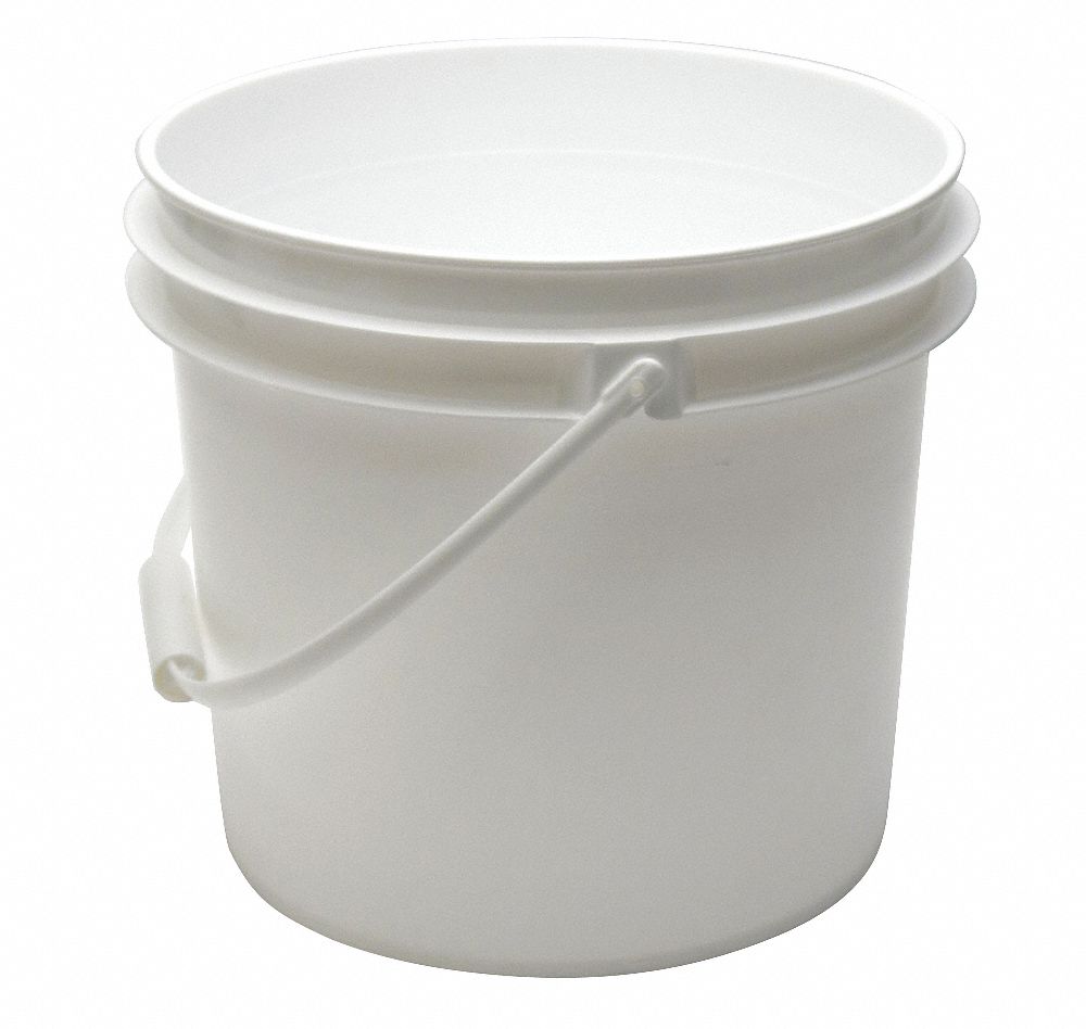 Pail, Bucket/Pail Material Plastic, Color White, Handle Material Plastic, Head/Closure Type Open Head, Includes Lid No, Maximum Operating Temperature 150 Degrees F, Overall Diameter 12 3/8 in, Overall Height 11 1/8 in, Overall Width Not Applicable, Shape Round, Volume Capacity 3.5 gal, FDA Approved FDA Certified, Overall Length Not Applicable, Finish Unfinished, Inside Length Not Applicable, Inside Width Not Applicable, Material Thickness 90 mil, Stackable Yes