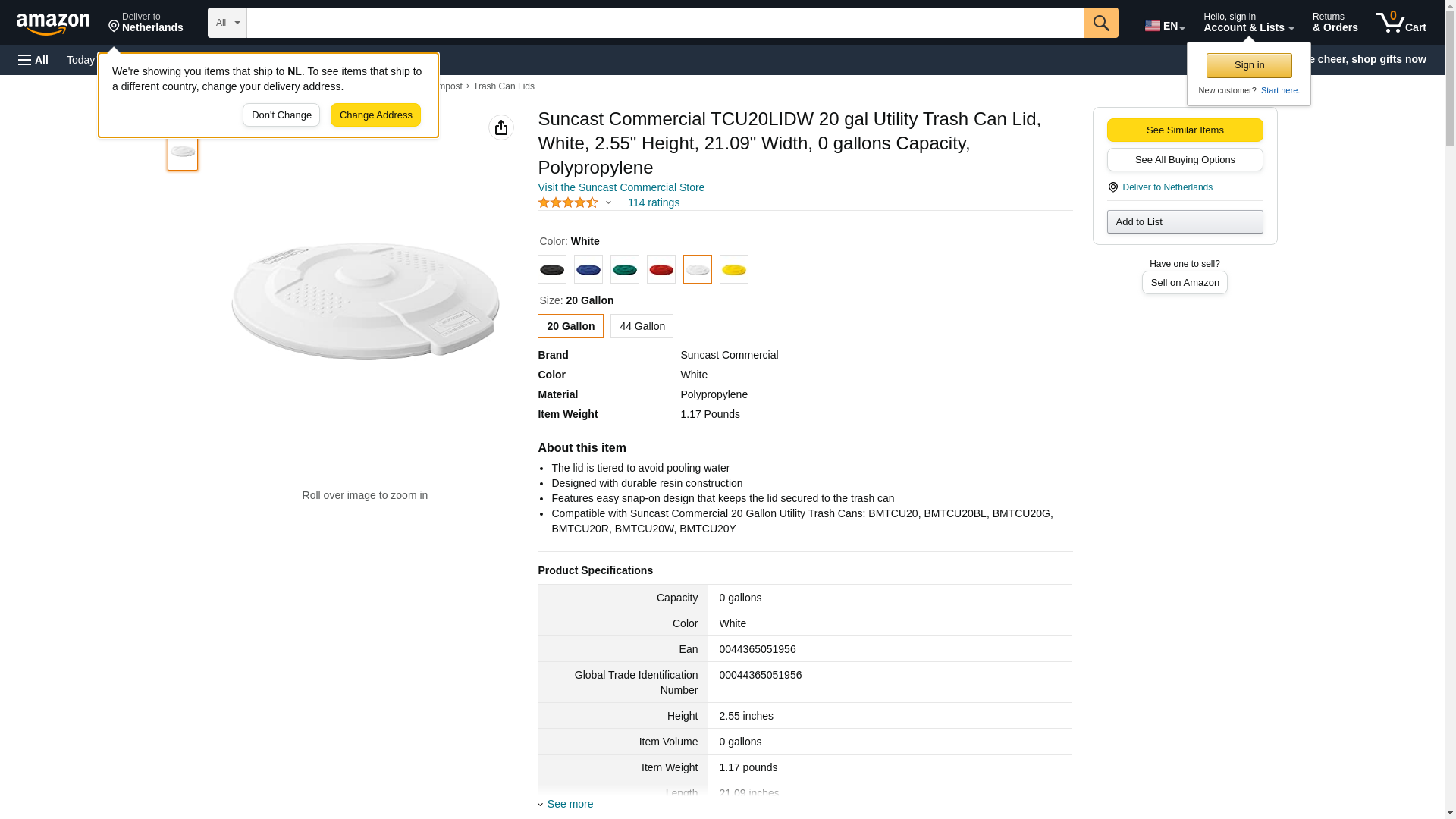 Suncast Commercial TCU32LIDW 32 gal Utility Trash Can Lid, White, 2.65" Height, 23.59" Width, 0 gallons Capacity, Polypropylene