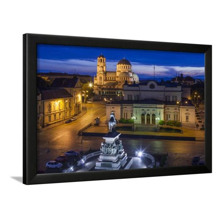 <ul> <li>Title: Bulgaria, Sofia, Ploshtad Narodno Sabranie Square, Elevated View, Dawn</li> <li>Artist: Walter Bibikow</li> <li>Paper Type: Photographic Print</li> <li>Product Type: Framed Art Print</li> <li>Framed in SOHO Black</li> <li>Arrives ready-to-hang for fast, simple installation</li> <li>Framed Size: 26x18 in.</li> <li>Handcrafted in the USA</li> </ul>