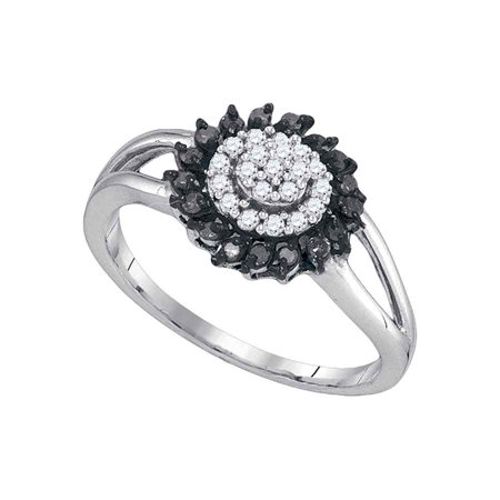 10kt White Gold Womens Round Black Colored Diamond Cluster Ring 1/4 Cttw
