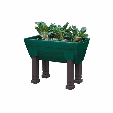 <br /> <b>Garden Wizard Elevated Garden, Green:</b> <ul> <li>Self-watering elevated garden</li> <li>Holds over 10 gallons of water</li> <li>Includes potting gravel for self-draining functionality</li> <li>Made of polyethylene </li> <li>Made using FDA-approved materials</li> <li>Sturdy, friction-fit legs</li> <li>S-hooks for hanging accessories</li> <li>1-year Limited Manufacturer's Warranty</li> </ul>
